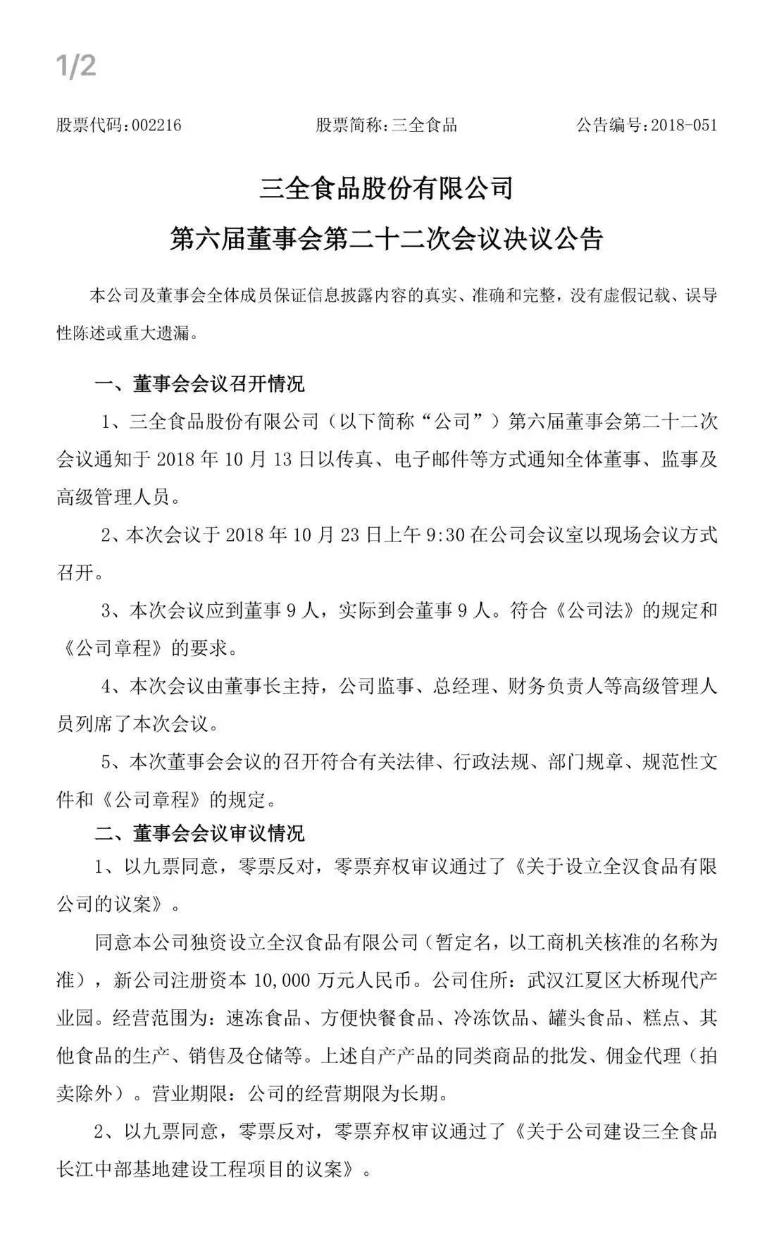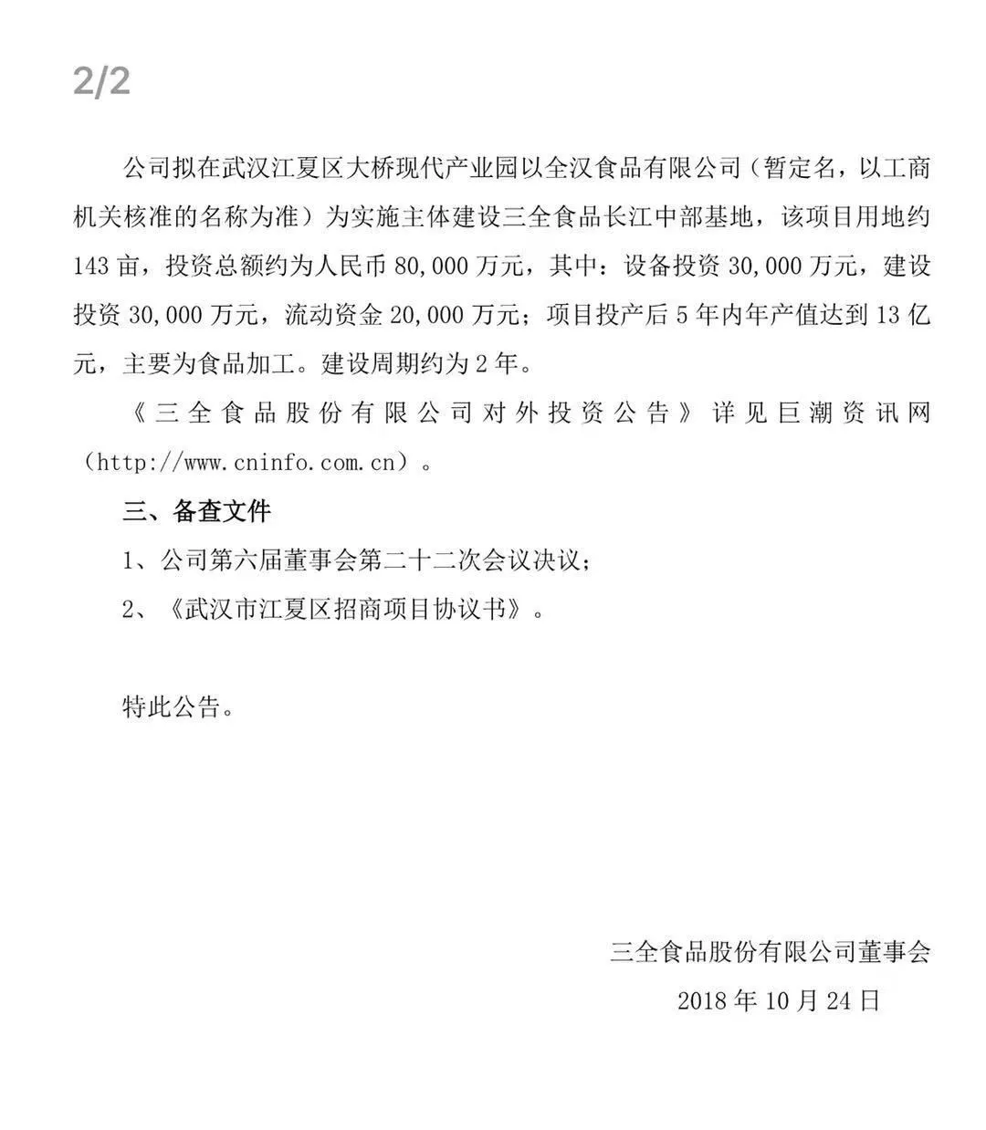 10月17日,安井食品與湯陰縣人民政府簽約,擬投資3億元建華北生產(chǎn)基地。今天,三全食品又發(fā)公告稱,擬投資8億元在武漢建設(shè)長(zhǎng)江中部基地。