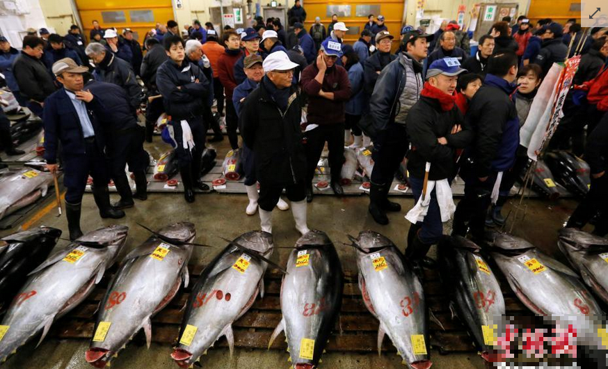 日本筑地魚市新年首拍現場,一條魚210萬人民幣