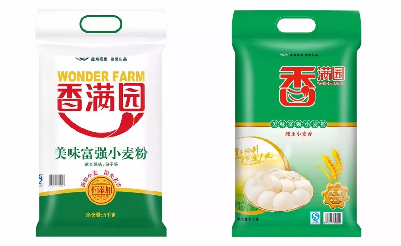 常見面粉品牌中,1+1、金沙河、香滿園等外包裝上,都印有與“沒有添加劑”相關的字樣。