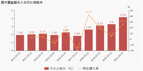 雙匯發展于2021年4月28日披露一季報,公司2021年一季度實現營業總收入183.2億,同比增長4.1%;實現歸母凈利潤14.4億,同比下降1.6%;每股收益為0.42元。