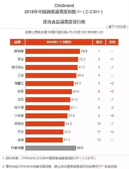 小編認為該評價標準比較有疑問的是:安井、海欣、興威、升隆等企業都沒有上榜,反倒是好利來、天方、西格瑪、胖哥、科迪(金城)作為速凍行業滿意度排行前12上榜。