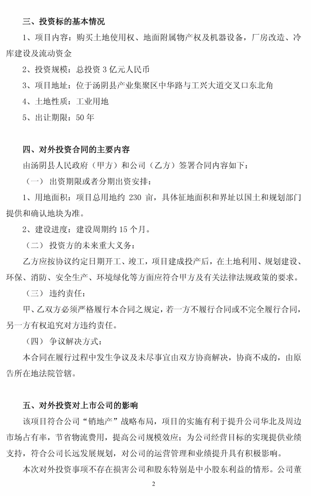 項目占地約230畝,地址位于河南省湯陰縣境內,具體面積和界址以國土和規劃部門提供和確認地塊為準。公告中表示,公司將在湯陰縣境內注冊成立子公司并依法納稅,以達到互惠互利,共同發展的目標。