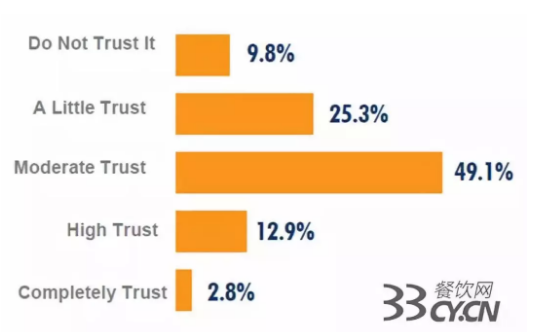 根據TrendSource近期基于美國便利店內鮮食(炸雞、熱狗、Nachos)的調查,近一半(49.1%)的消費者認為對于店內鮮食的安全性、食物質量適度信任,僅有2.8%的消費者完全信任其質量,另外合計約35%的消費者完全或基本不信任其質量。
